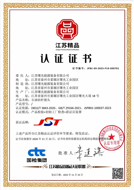 江蘇精品認證證書